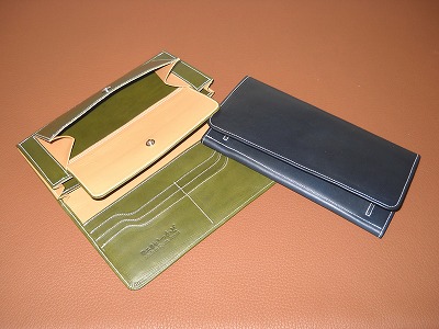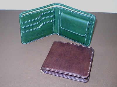 財布などの小物にも、手製靴に用いるような、きめ細かく丈夫な材料を使っています。裏地には薄く漉いた、靴用のライニングレザーを用いて耐久性と高級感を高めています。各製品とも、多少の在庫はありますが、注文をいただければいろいろな工夫やデザイン変更にも対応します。