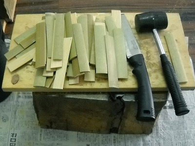 製作依頼のあった靴がひと段落した(後日公表予定?)ので、竹シャンクの加工をしました。実は何か竹細工でもして遊ぼうかと思って、大事にとっておいたのですが、結局材料になってしまいました。良い感じに乾燥していて加工しやすかったこともさることながら、竹の香りがなかなか気持ちいい作業です。革でない素材を触るのは、気分転換にもなります。また、折を見て竹を手に入れておきたいな。今度こそ、何か小物でも作ってみよう。