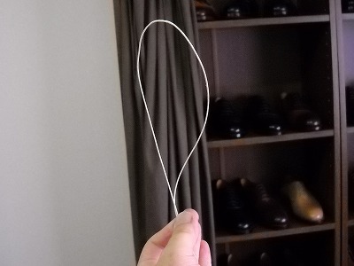チャンを擦り込まれて強くなった麻糸は立つ! 手製靴作り初期段階のちょっとしたパフォーマンス。