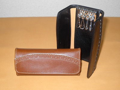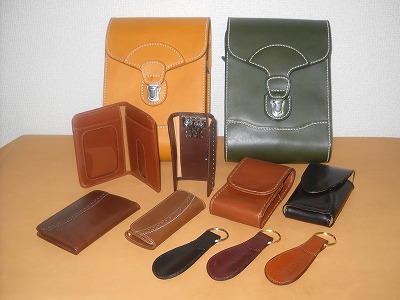 画像はフレンチカーフのキーケース(¥6,000)。多少値は張りますが、靴に使う革なので、やたら頑丈です。こういうちょっとした小物を、少量ですが用意しています。目立つ色から売れるのが悩みどころかもしれません。