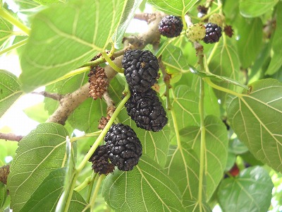 桑の実狩りに行ってきました。わが家の年中行事のひとつです。野良桑の雌木を目指して京都府北部へ。蒸し暑いし、土曜日に患った左目のものもらいがストレスだし、汗ダラダラの一日になってしまいましたが、相手は生き物で待ってくれませんから無理は通さなければいけません。夜半までジャム作ってました。無理した以上に、疲労以上に得るものが大きいので、どうにもやめられません。