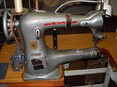 実は、学生時代に割り当てられた機種がTF-5で、その踏み味の重さというか、トルク感が気に入っていました。他の機種が”カッチャン・カッチャン・・・”と小気味よく運針するのに対して、この機種は”トスン・トスン・・・”と針の落とし方に重量感があって、好みに合ったのです。ただし、貸し出しミシンには問題があって、運針の出足が非常に悪く、踏みにくくて、毎年割り当てられる人から嫌われていたのです。しかも、上手い人には分かりにくい程度の難だったので、そのまま改善されることもなく、ミシン初心者の私は2年間苦労しました。そこで、このミシン購入の最大の動機は、偶然にも「貸し出しミシンと同じ難がある」というところでした。つまり、あのミシンの問題点はどこか調べたくなったのです。在学中は時間に余裕もなく、騙し騙し使っていましたが、卒業後にいじくり倒して原因を見つけ、壊してしまうことも覚悟して強引な方法で修理、というか一か八かの無理をして・・・今では気持ちよく踏めるようになりました。貸し出しミシンのおかげで製甲に苦手意識があったのですが、その意識が今でも残っているおかげで、緊張感を持ちながら楽しく踏めるようになりました。ときどき調子が悪くなったりしますが、それは私の調整不足であって、ミシンのことを何も知らなかった頃を思えば、改善は楽勝です。苦労させられたけれど、その分だけ気の置けない、大事な相棒なのです。