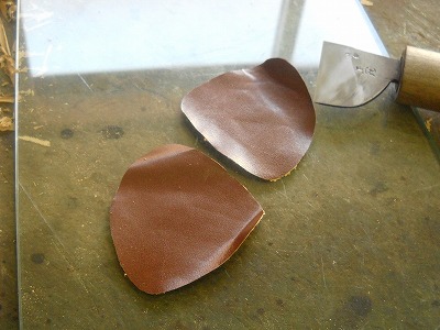 よく砥いだ包丁でおにぎり型の革をペラペラに漉く・・・メダリオンの裏張り。破らないように集中して作業していると、心が澄んできて逆に落ち着いてきます。