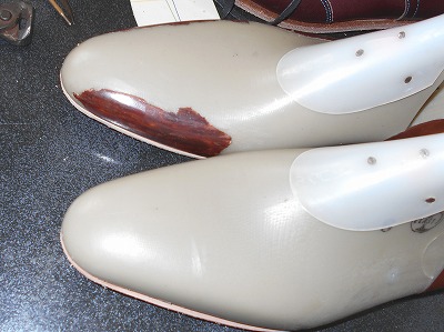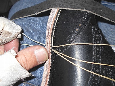ヒールは全ゴム、ハーフラバーソール張りのご注文でした。ビブラム社で揃えてみましたが、靴の雰囲気作りによく貢献してくれました。
