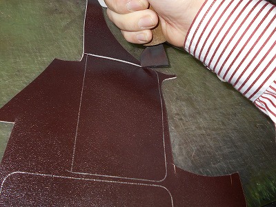 表革にはフレンチカーフを用います。傷を避けて型入れをして、裁断します。