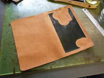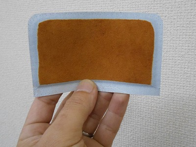 表革の裏面全体にゴム糊を塗ります。
