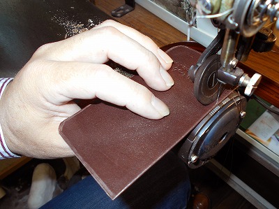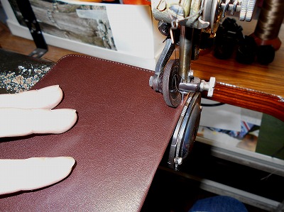 前回、パーツを作ったので、続けて縫製します。作業としては裁断/漉きの方が、刃物を扱うだけに気を使いますし、時間もかけています。