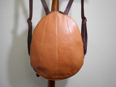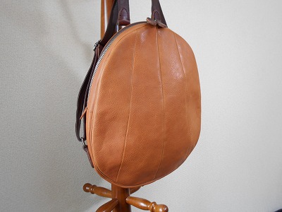 こんな形の鞄を作る人がいてもいいんじゃない、一品物だし。そんな意識で作った「たまごリュック」。手作り市に連れて行くと、やはり目に付くようで、看板娘として大活躍です。「かわいい」「おしゃれ」「素敵」その他多くのほめ言葉をいただきました。